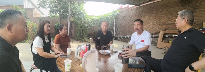 隨后,北店頭鎮(zhèn)黨委書記霍雙群帶領鎮(zhèn)主管扶貧、民政和產(chǎn)業(yè)項目的同志來到工作組駐地現(xiàn)場進行座談交流。在座談中,韓主席與霍書記重點就幫扶村現(xiàn)有羊肚菌項目的科學種植管理及如何打造好“一村一品”達成共識,并在鄉(xiāng)村基礎設施建設、人居環(huán)境整治、鄉(xiāng)村振興產(chǎn)業(yè)發(fā)展、消費幫扶等方面交換了意見,為完成全年任務打下保障。