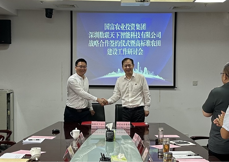 7月2日,國富農(nóng)業(yè)投資集團與深圳數(shù)聯(lián)天下智能科技有限公司簽訂戰(zhàn)略合作協(xié)議,為國富農(nóng)業(yè)投資集團加快培育農(nóng)業(yè)新質(zhì)生產(chǎn)力、打造省內(nèi)一流高標準農(nóng)田建設項目注入科技新活力。國富農(nóng)業(yè)投資集團黨委副書記、副董事長、總經(jīng)理張立忠,集團黨委常委、常務副總經(jīng)理馬國棟,集團黨委委員、副總經(jīng)理李其強,及相關業(yè)務骨干同數(shù)聯(lián)天下副總裁鄧才良一行進行工作研討并見證簽約儀式。