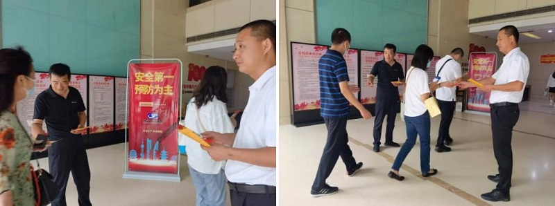 在國富大廈上班早高峰期間,由恒銀公司、大廈物業(yè)公司的共同協(xié)助下開展安全生產(chǎn)宣傳日活動。通過擺放安全生產(chǎn)警示展板、發(fā)放消防安全手冊,征集安全消防建議、推進線上安全生產(chǎn)網(wǎng)絡答題知識競賽等多形式進行安全宣傳科普活動。并以開拓思路、抓準時間節(jié)點、力爭消防安全知識全員化普及為目的,開展宣傳安全生產(chǎn)政策法規(guī)、應急避險和自救互救方法,發(fā)放200余份安全知識手冊、發(fā)布《國富投資集團2022年安全生產(chǎn)知識試卷考題》,宣傳省安全應急管理廳“冀時安全”應急管理宣傳教育平臺線上知識競賽活動。