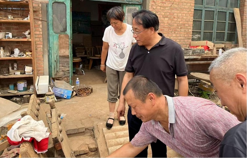 李其強一行在大河道鄉(xiāng),和派駐干部一同前往該村老榆木加工坊、黃瓜育種籌建地、電商直播基地調研,深入了解特色農(nóng)產(chǎn)品種植、養(yǎng)殖、手工加工情況,以及市場銷路和收益情況,細致詢問遇到的困難和問題,并與現(xiàn)場人員共同理思路、解難題、探尋解決方案。