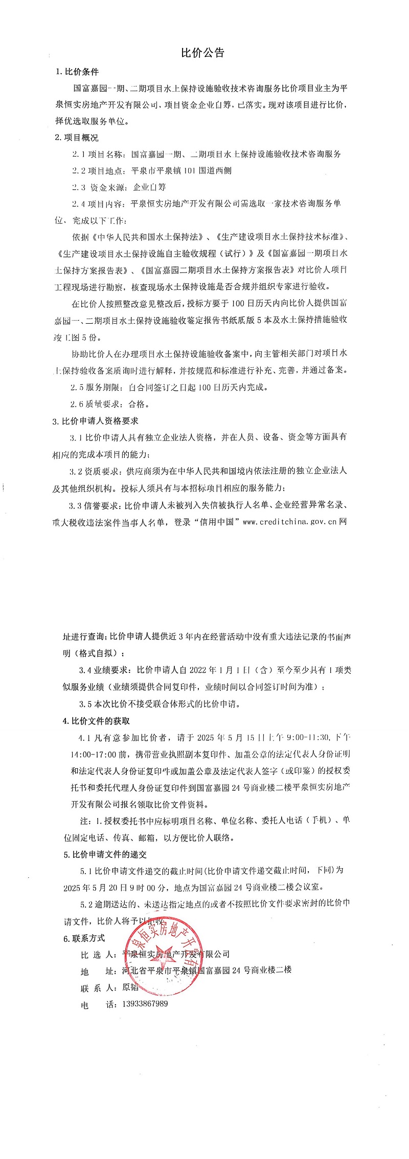 > 平泉國富嘉園一期、二期項目水土保持設(shè)施驗收技術(shù)咨詢服務(wù)比價公告